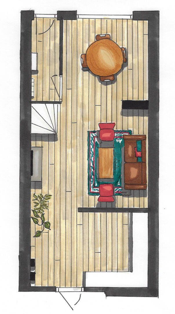 De woonkamer en 2 slaapkamers krijgen allemaal een eigen interieurontwerp.
