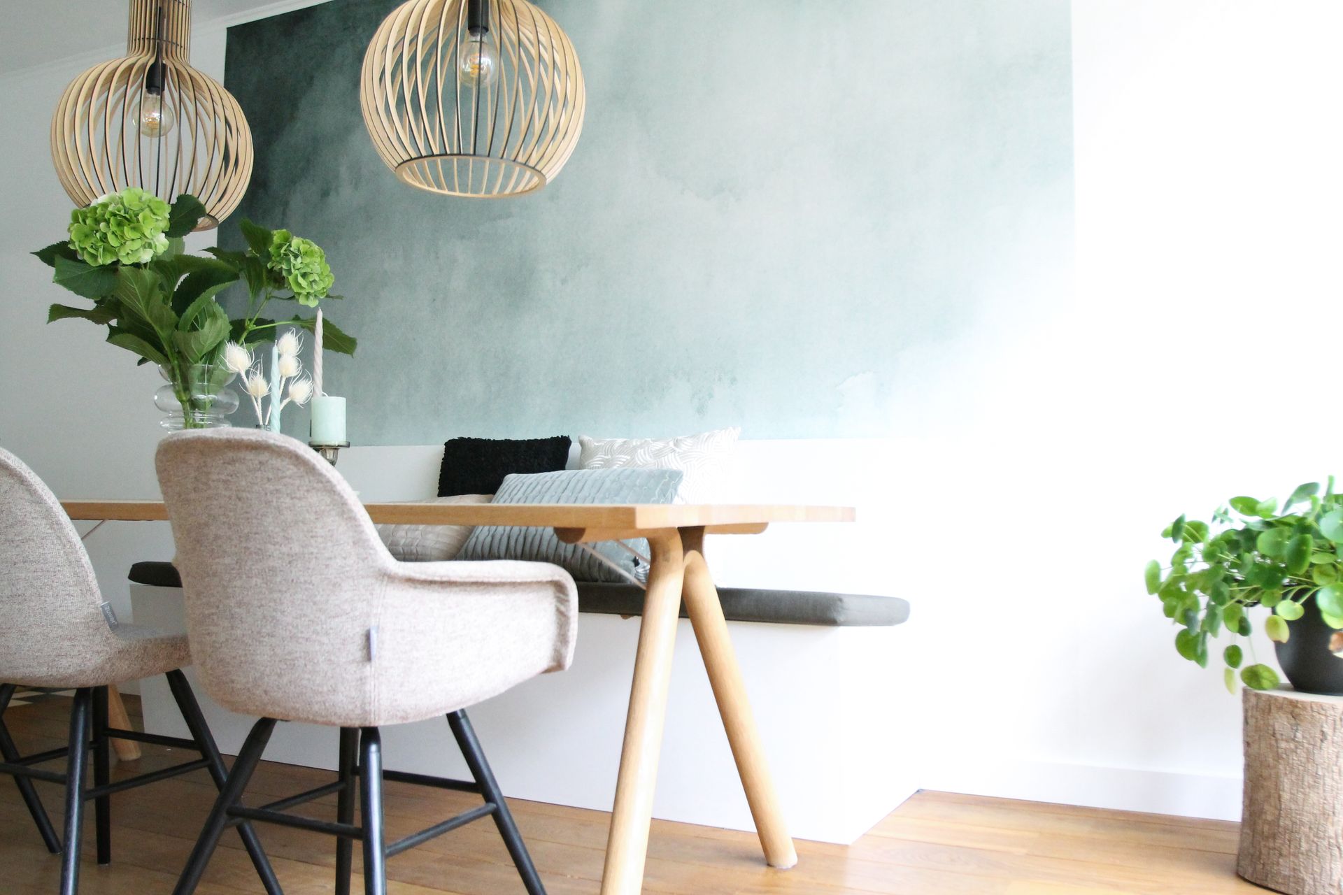 Om aan de eettafel niet teveel budget uit te geven, heb ik deze prachtige eettafel van Muuto op marktplaats gevonden voor mijn klant. Ook de witte eetbank komt van marktplaats. Samen met de nieuwe stoelen van Zuiver en de nieuwe lampen welke een replica zijn van de Secto Octo lampen, vormen ze een mooi geheel.